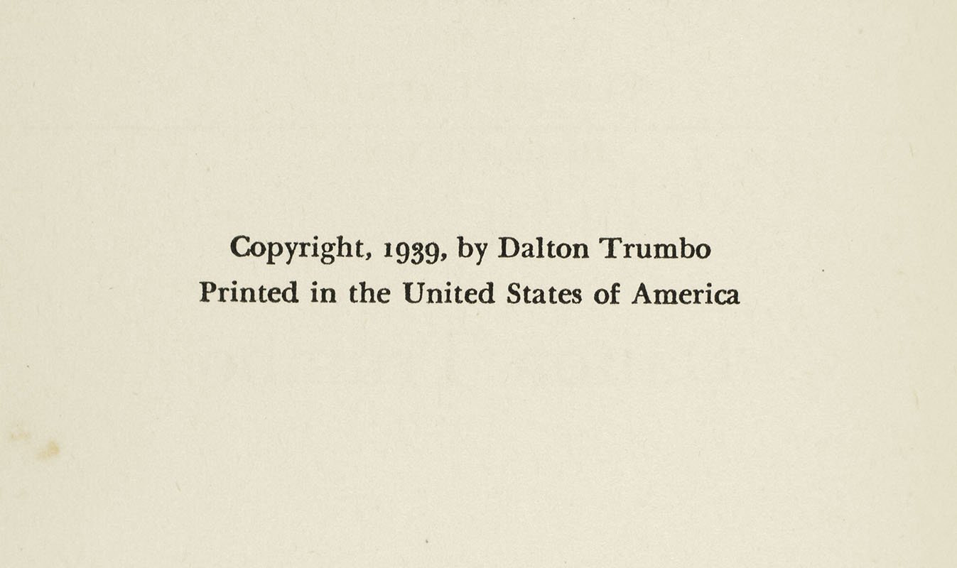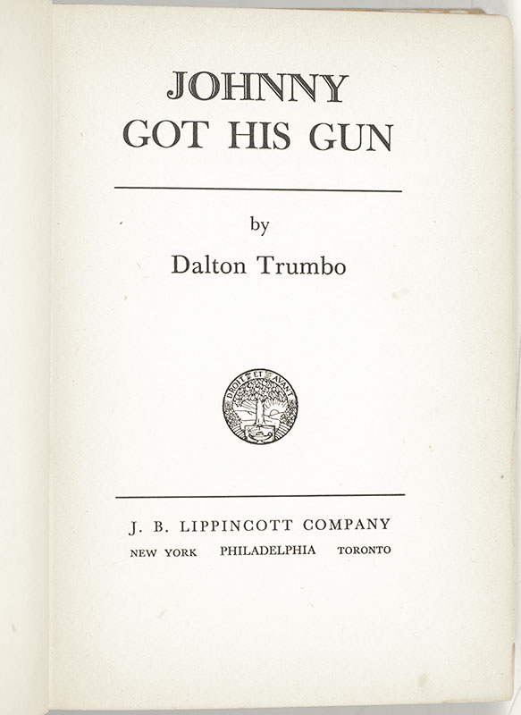 "THE MOST EFFECTIVE ANTI-WAR STATEMENT IN AMERICAN LITERATURE": First Edition of Dalton Trumbo's Johnny Got His Gun; Signed by Him