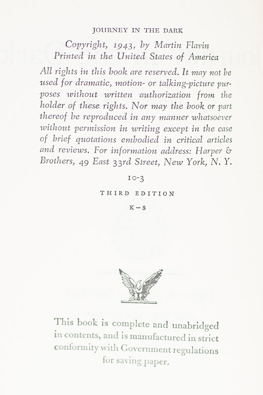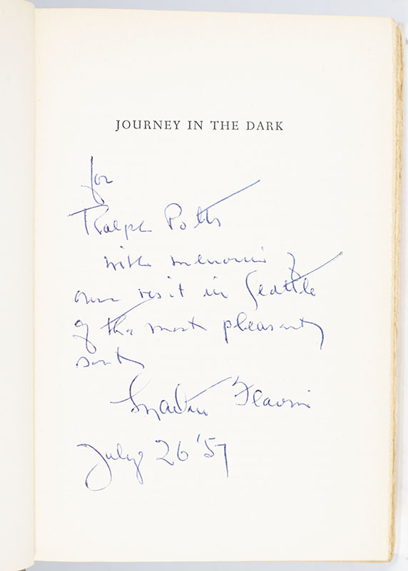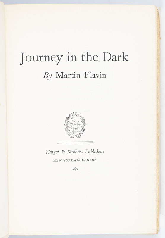 "with memories of our visit in Seattle of the most pleasant sorts": Martin Flavin's Pulitzer Prize-winning novel Journey in the Dark; inscribed by Him