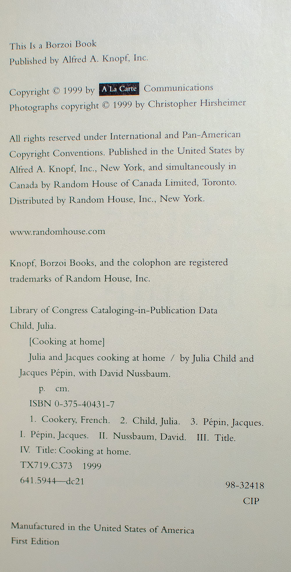 Julia and Jacques Cooking at Home: A Cookbook.