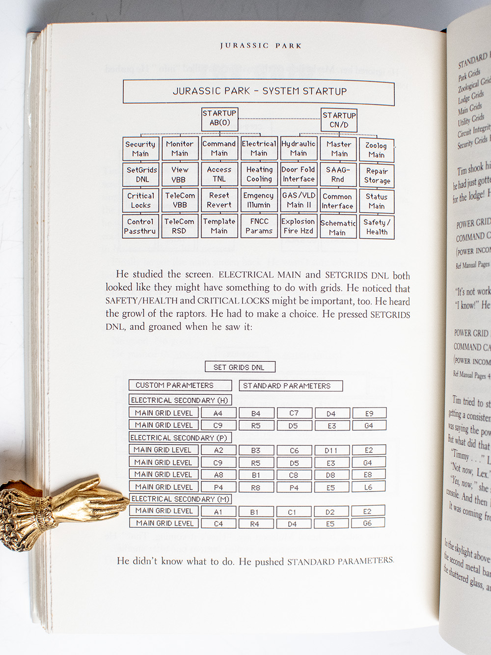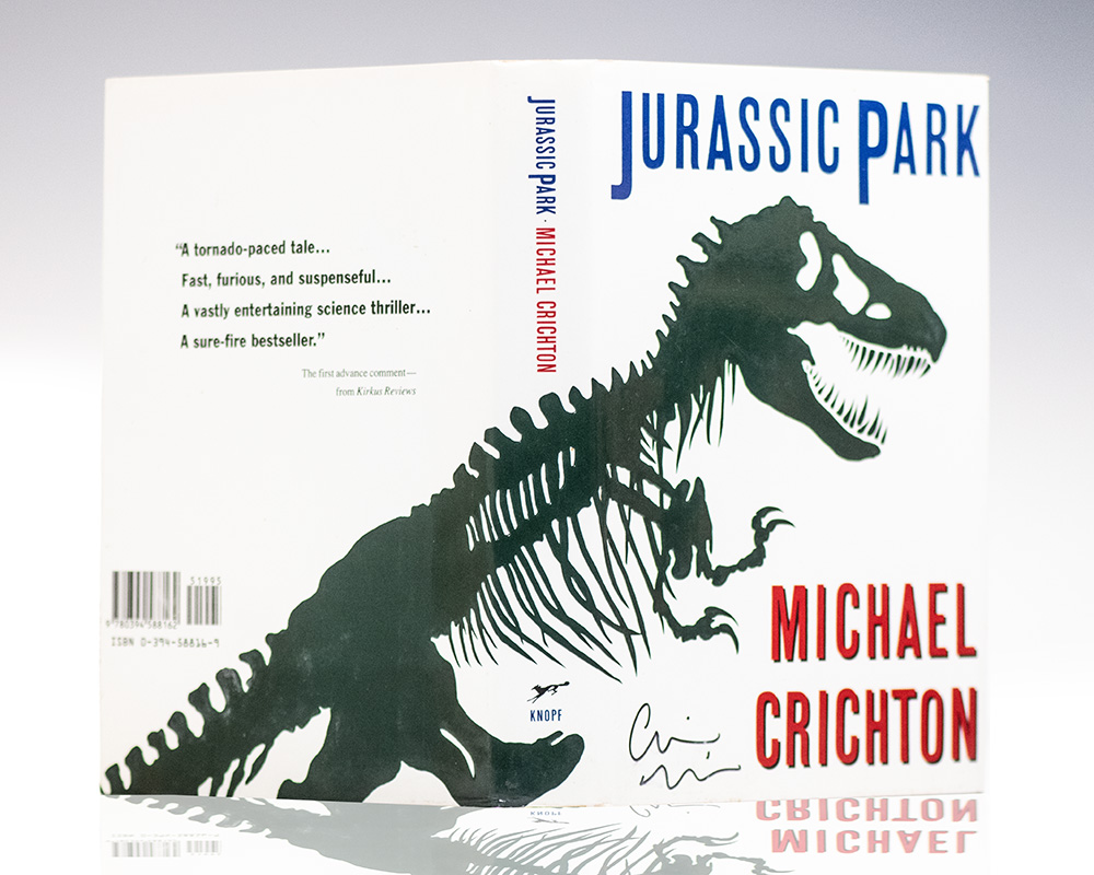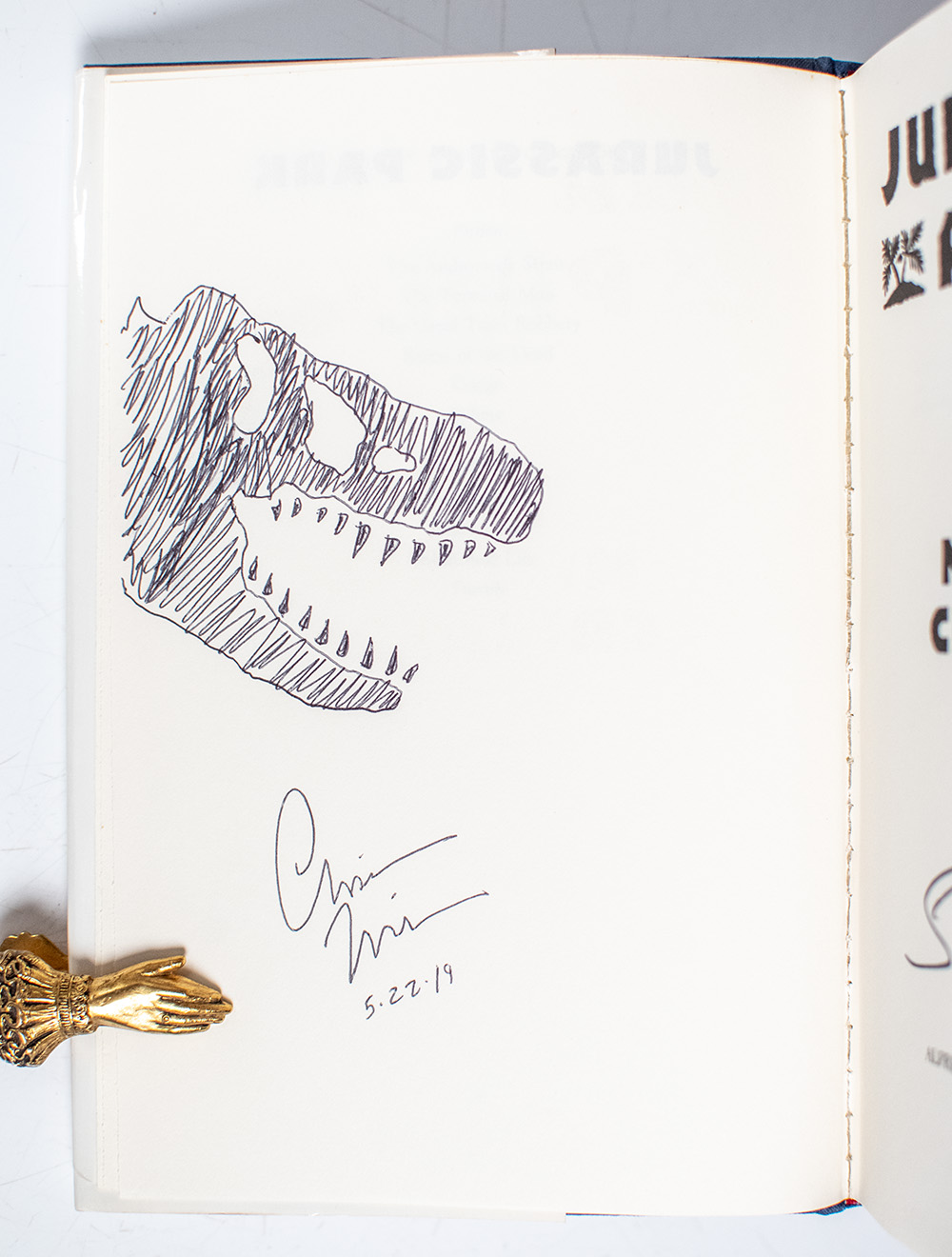 “The planet has survived everything, in its time. It will certainly survive us": First Edition of Jurassic Park; Signed by BY MICHAEL CRICHTON, STEVEN SPIELBERG, AND Three Times by CHIP KIDD With an Original Drawing