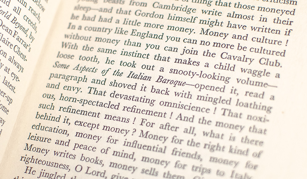 Frist edition of Orwell's classic social criticism of money-worship and status. Octavo, original cloth. Very good in the rare original dust jacket with some restoration and flaps restored. First editions in the original jacket are rare.