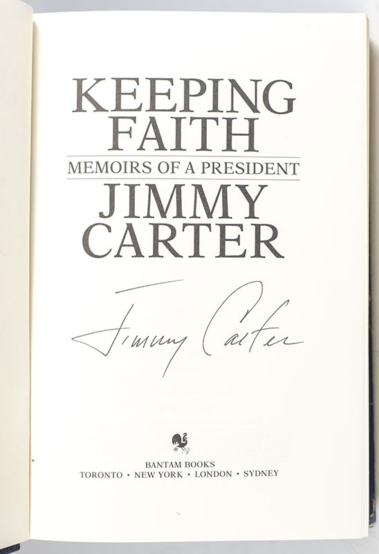 First edition of the 39th President of the United States' memoir. Octavo, original cloth, illustrated. Signed by Jimmy Carter on the title page. Near fine in a very good dust jacket.