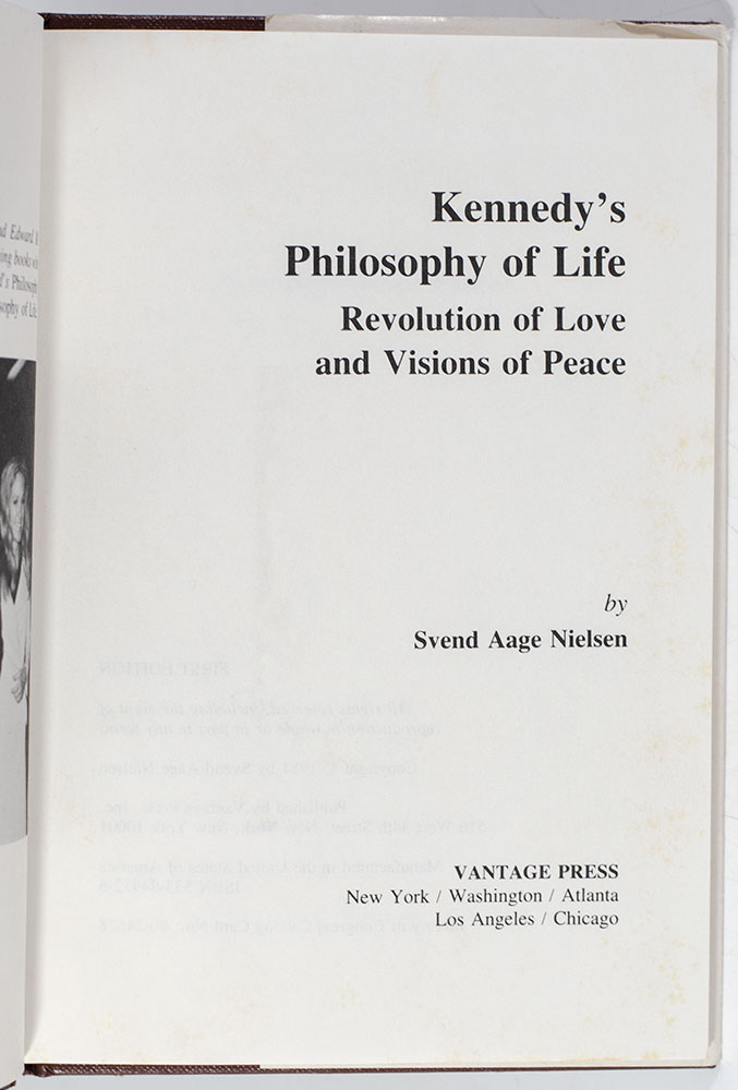 First edition of Svend Aage Nielsen's Kennedy's Philosophy of Life; Lengthily inscribed by him to Rose Kennedy