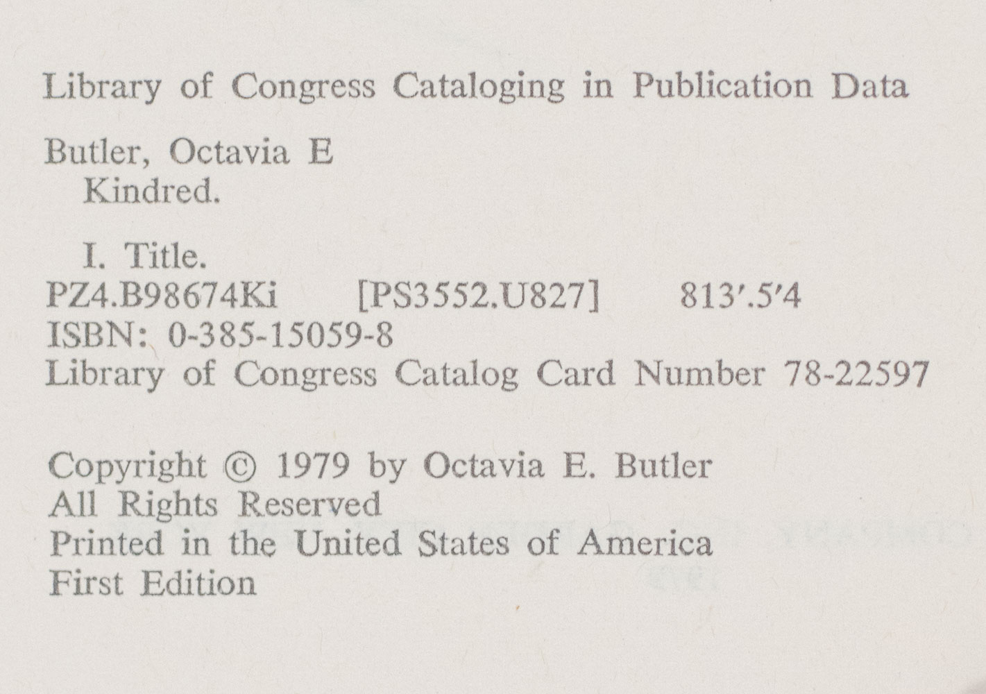 “Better to stay alive, At least while there's a chance to get free": Rare first edition of Octavia Butler's Kindred; inscribed by her