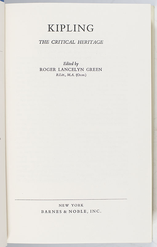 First edition of Roger Lancelyn Green's Kipling: The Critical Heritage