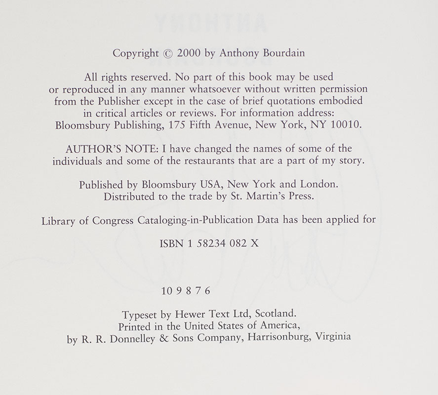 “I've long believed that good food, good eating, is all about risk... food, for me, has always been an adventure": First Edition of Anthony Bourdain's Kitchen Confidential