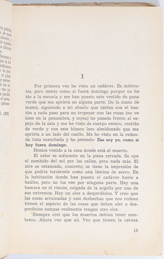 First edition of the Nobel Prize-winning author's first book. Octavo, original illustrated wrappers by artist Cecilia Porras. In very good condition. A very sharp example.
