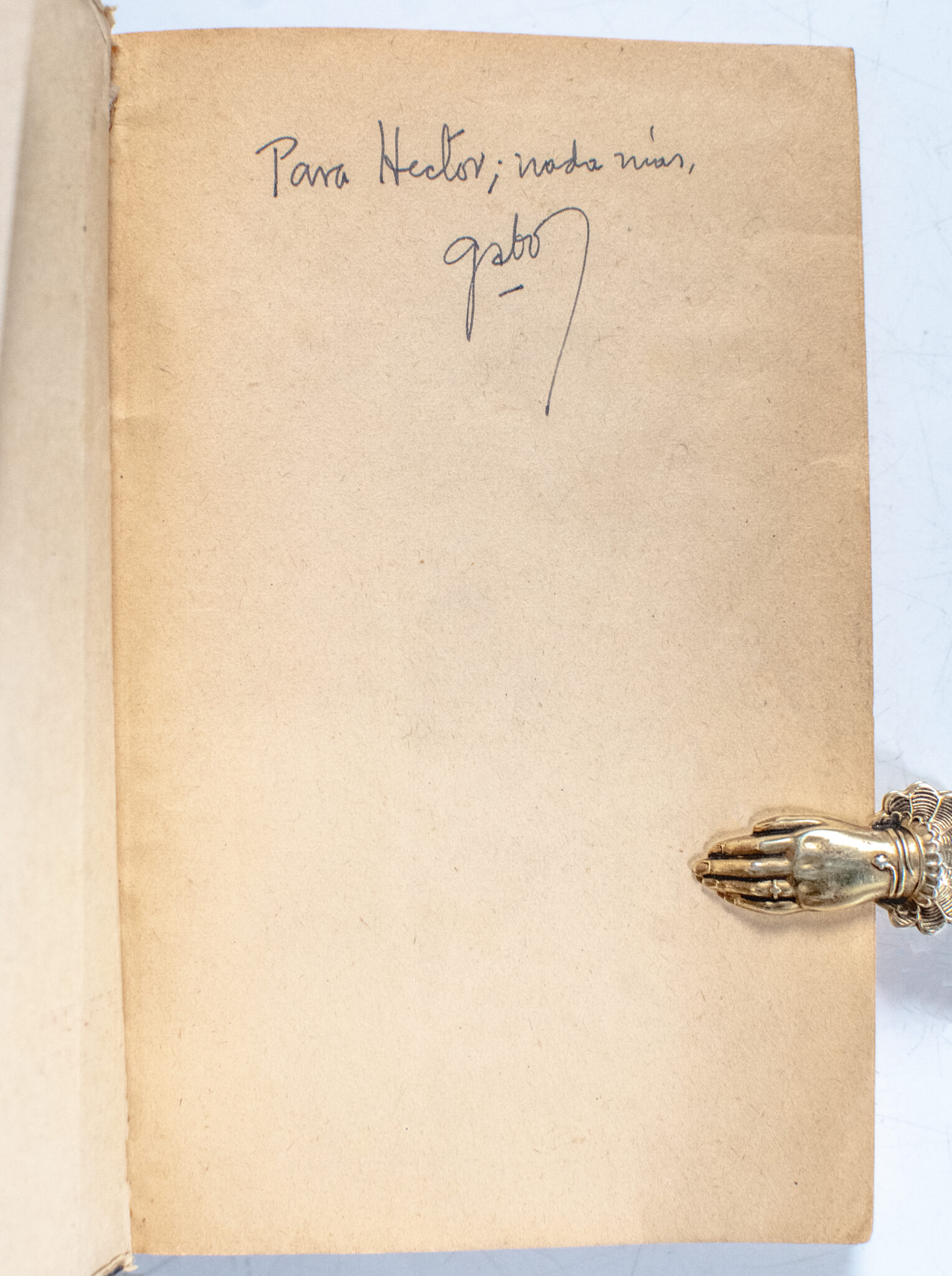 First edition of the Nobel Prize-winning author's first book which introduced the world to magical realism. Octavo, original illustrated wrappers by artist Cecilia Porras. Association copy, inscribed by the author in one of the earliest signatures we have seen on the front free endpaper, "Para Hector; nada más, Gabo -." Translated as "nothing more." The recipient, Héctor Rojas Herazo was a contemporary of García Márquez and an integral member of the same intellectual circle of writers and artists who reshaped Colombian literature in the mid-twentieth century. Their relationship was grounded in sustained intellectual exchange rather than direct collaboration, marked by mutual recognition and shared participation in the cultural networks of Colombia’s Caribbean coast and Bogotá’s literary scene. As a poet, novelist, essayist, and visual artist, Rojas Herazo engaged many of the same regional, historical, and social concerns that informed García Márquez’s work, particularly those rooted in Caribbean experience, while developing a distinct aesthetic orientation. His writing emphasized interiority, existential reflection, and formal discipline over narrative exuberance, offering a counterpoint to García Márquez’s expansive narrative imagination. Together, though pursuing divergent artistic paths, they contributed to a broader intellectual project that redefined Colombian literature, moving it beyond provincialism and ideological constraint and situating it within a modern, internationally resonant framework. Gabriel García Márquez frequently signed his name as Gabo, particularly when inscribing books for friends, colleagues, or admirers. While he was officially Gabriel García Márquez, "Gabo" (or sometimes "Gabito") was his widely known nickname throughout Latin America. He has been quoted as saying that prior to the publication of One Hundred Years of Solitude, none of his books had sold more than 700 copies. Despite the poor sales and even after the success of Cien Anos de Soledad, Garcia Marquez described La Hojarasca as the favorite of his own works because of its spontaneity and honesty. In very good condition. Housed in a custom half morocco and folding chemise slipcase. An exceptional association.