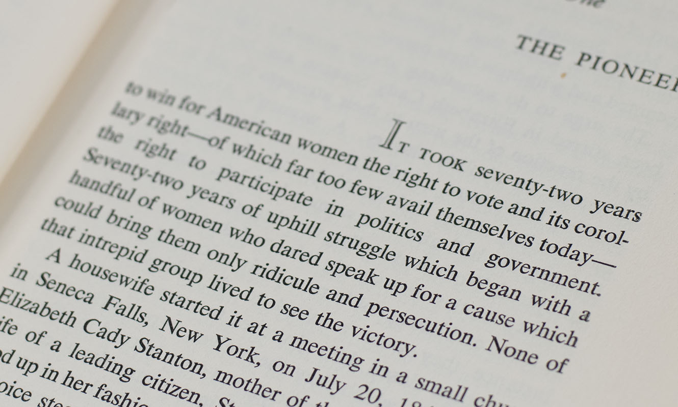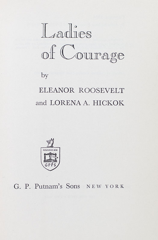 "Eleanor Roosevelt was a figure of considerable historical consequence on two grounds. She embodied the aggressive spirit of feminism that began challenging male domination of American business and politics in the 1920s and she became… the champion of the New Deal's liberal impulse" (New York Review of Books). Ladies of Courage, coauthored by Roosevelt with her close friend, journalist Lorena Hickok, honors the struggle and political achievements of women. Hickok, who "ranks among the most important woman journalists of the 20th century… entered Eleanor Roosevelt's life at a pivotal moment and became her greatest source of emotional sustenance as she began to redefine the role of First Lady" (Beasley et al., Eleanor Roosevelt Encyclopedia, 236).