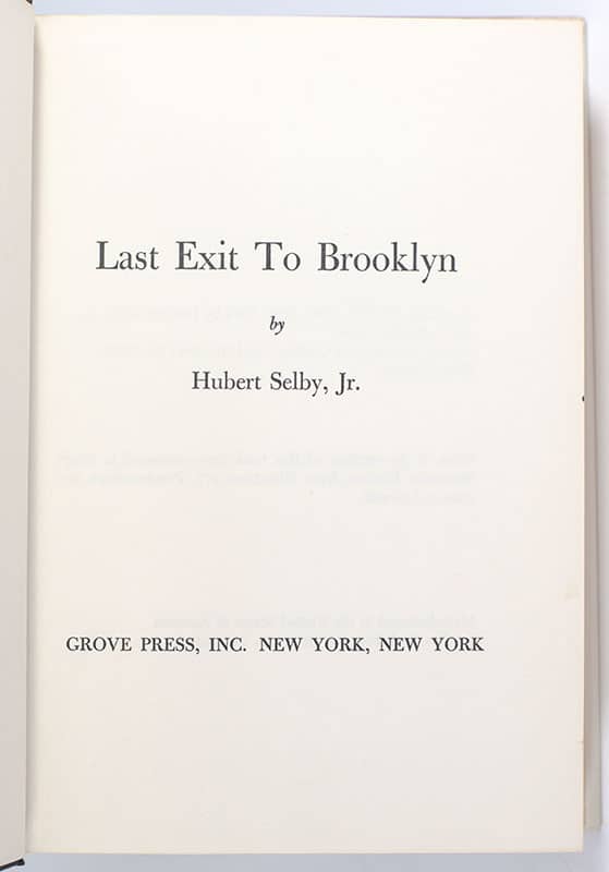 First Edition of Hubert Selby's Last Exit To Brooklyn; Inscribed by Him