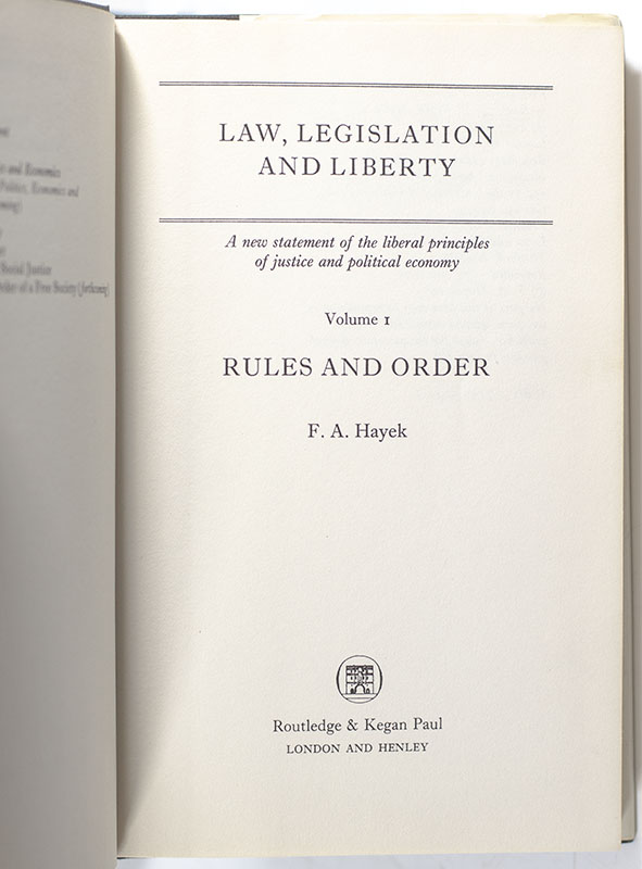 Law, Legislation and Liberty. A New Statement of the Liberal Principles of Justice and Political Economy.