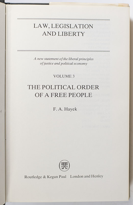 Rare first editions of Hayek's Law, Legislation and Liberty