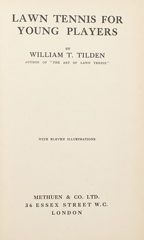 "Remember this at all times: always dress correctly for the game and be sure your racket suits you": First edition of William Tilden's Lawn Tennis For Young Players; inscribed by him to his nephew