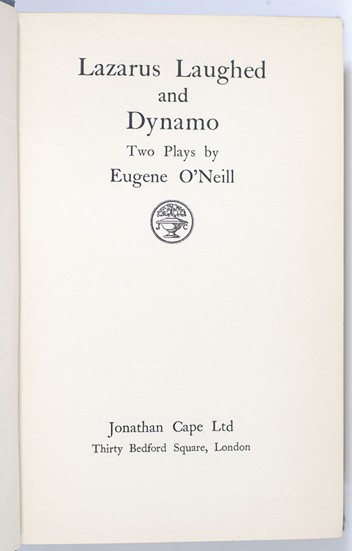 First Edition of Eugene O'Neill's Lazarus Laughed and Dynamo; inscribed by him