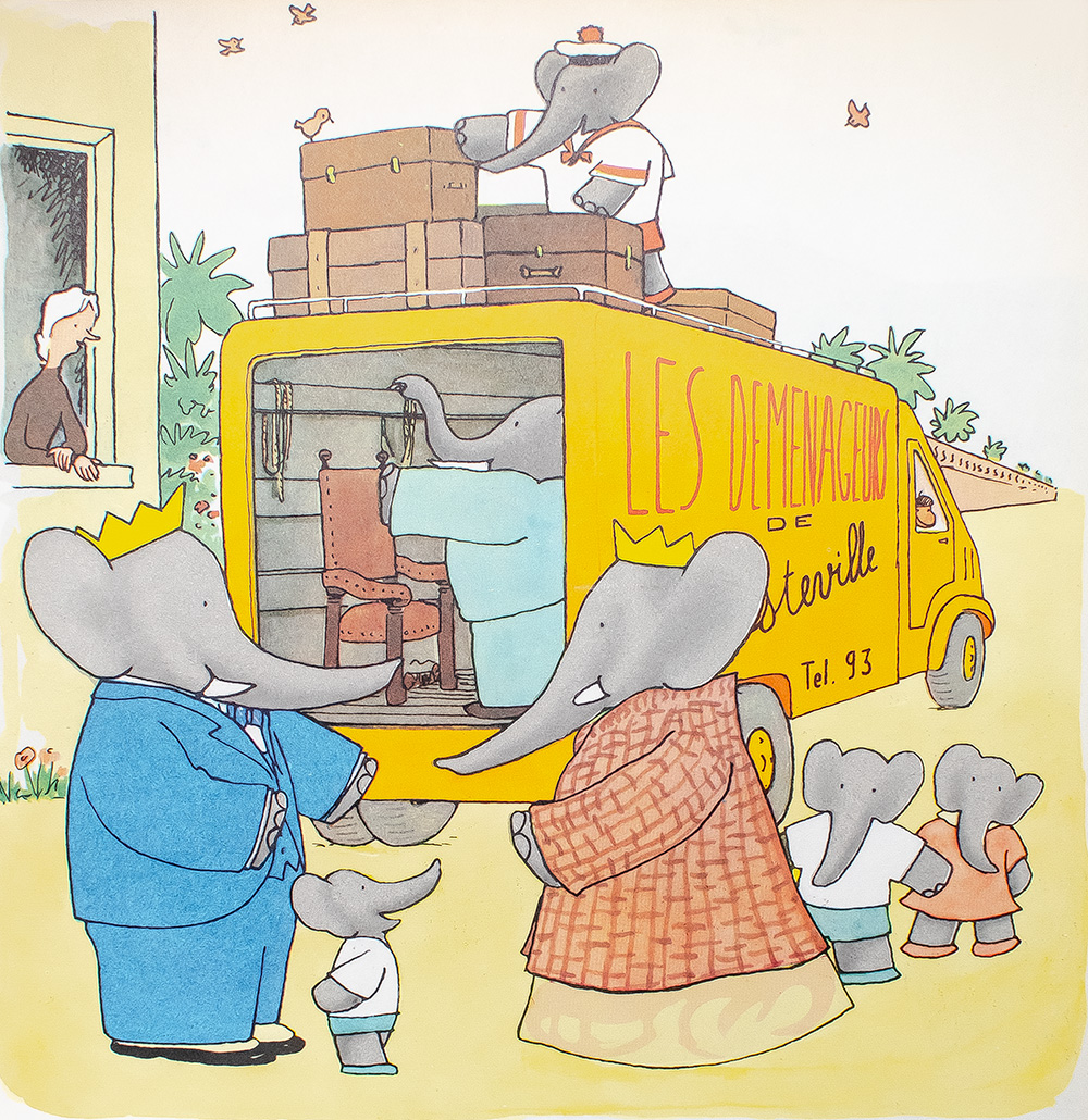Jean de Brunhoff wrote The Story of Babar based on a story his wife created for their children. The book enjoyed immediate success upon publication and de Brunhoff went on to publish six more stories in the series before his death in 1937. In Le Chateau de Babar, King and Queen of the Elephant Kingdom, Babar and Celeste, move to Bonnetrompe Castle and have a house-warming party.