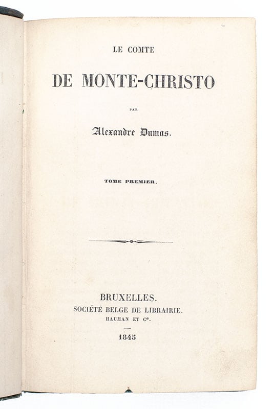 “IT'S NECESSARY TO HAVE WISHED FOR DEATH IN ORDER TO KNOW HOW GOOD IT IS TO LIVE": Exceptionally Rare First Belgian Edition of Alexandre Dumas' The Count of Monte-Cristo