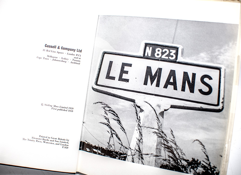 First edition of this firsthand experience of the 1959 24 Hours of Le Mans. Octavo, original publisher's black cloth, illustrated with black and white photographs. Signed by Stirling Moss on the half-title page. Fine in a very good dust jacket with tape repairs and a few small losses, inscription to the front free endpaper. Uncommon signed.