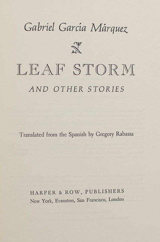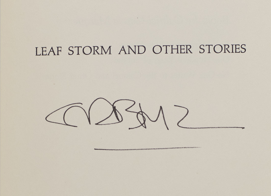 “As I hear him, I understand that he's not more moronic because of the brandy than he is because of his cowardice”: First Edition of Leaf Storm and Other Stories; Signed by Gabriel Garcia Marquez