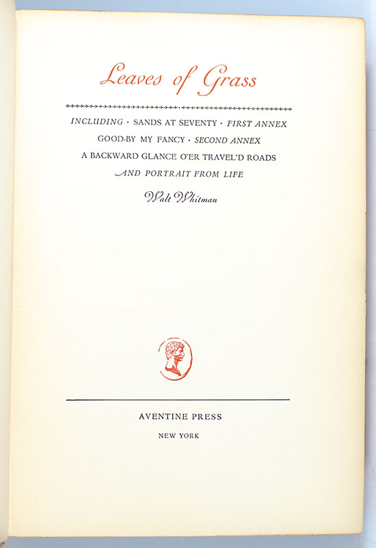 “DO ANYTHING, BUT LET IT PRODUCE JOY": Finely Bound example of Walt Whitman's Leaves of Grass