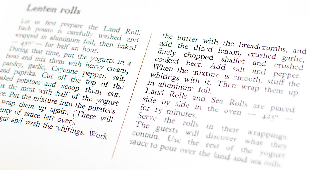 “When six years old I wanted to be a cook.” At age 68, Dalí fulfilled that ambition in this book. His careful selection of menus and recipes, “with its precepts and its illustrations, is uniquely devoted to the pleasures of Taste. Don’t look for dietetic formulas here. We intend to ignore those charts and tables in which chemistry takes the place of gastronomy. If you are a disciple of one of those calorie-counters who turn the joys of eating into a form of punishment, close this book at once; it is too lively, too aggressive and far too impertinent for you.” With color plates and in-text photographs and illustrations on nearly every one of the 322 pages. The colophon reads, “The divine Salvador Domenech Philippe Hyacinthe Dalí conceived and materialized this work dedicated to Gala. All the recipes in this cook book, never before published, have been elaborated with great precision by a ‘chef’ wishing to remain in the most secret anonymity.” Gala was Dalí’s wife and muse.