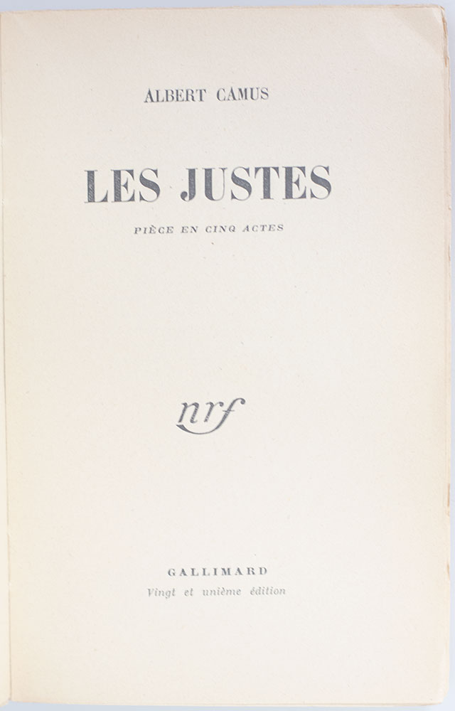 Les Justes: Piece en Cinq Actes. [The Just Assassins: A Play in Five Acts].