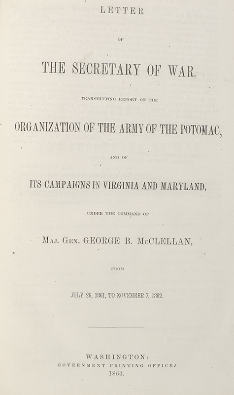 First edition of the Report of General George B. McClellan on the Organization of the Army of the Potomac