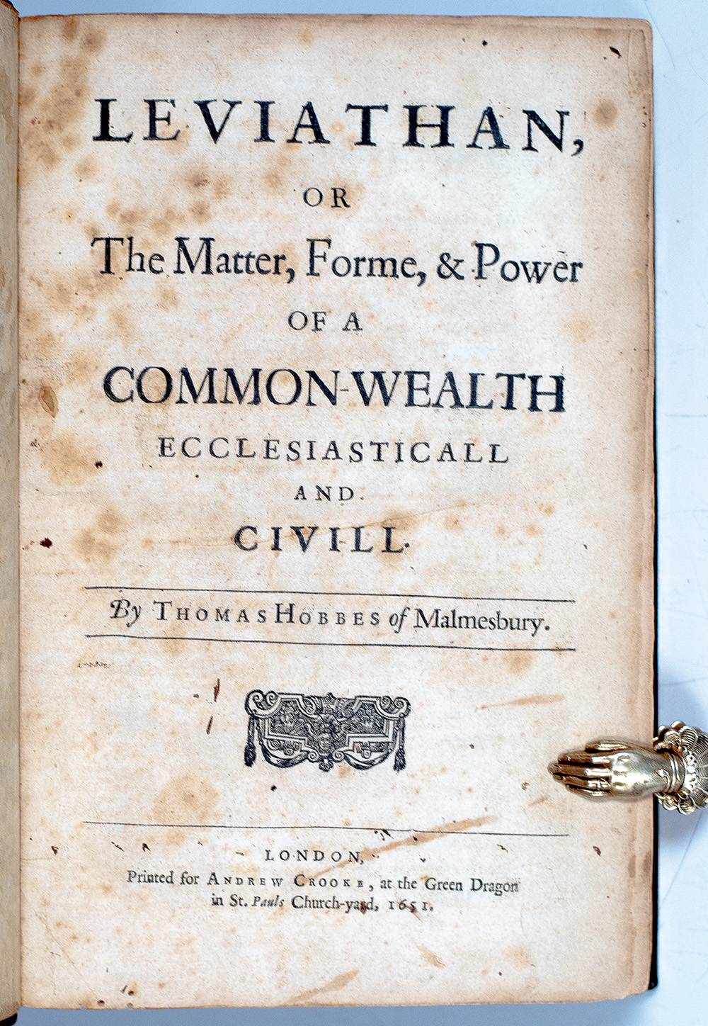 "For it can never be that war shall preserve life, and peace destroy it": First Edition, First Issue of Thomas Hobbes's Landmark Work Leviathan