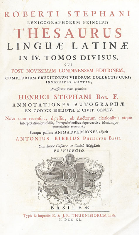 "The foundation of modern Latin lexicography": Rare 1740 edition of Robert Estienne's Thesaurus linguae latinae
