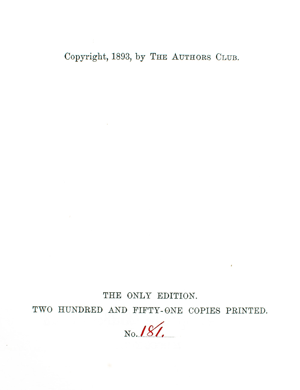 New York: Published by The Authors Club, 1893.