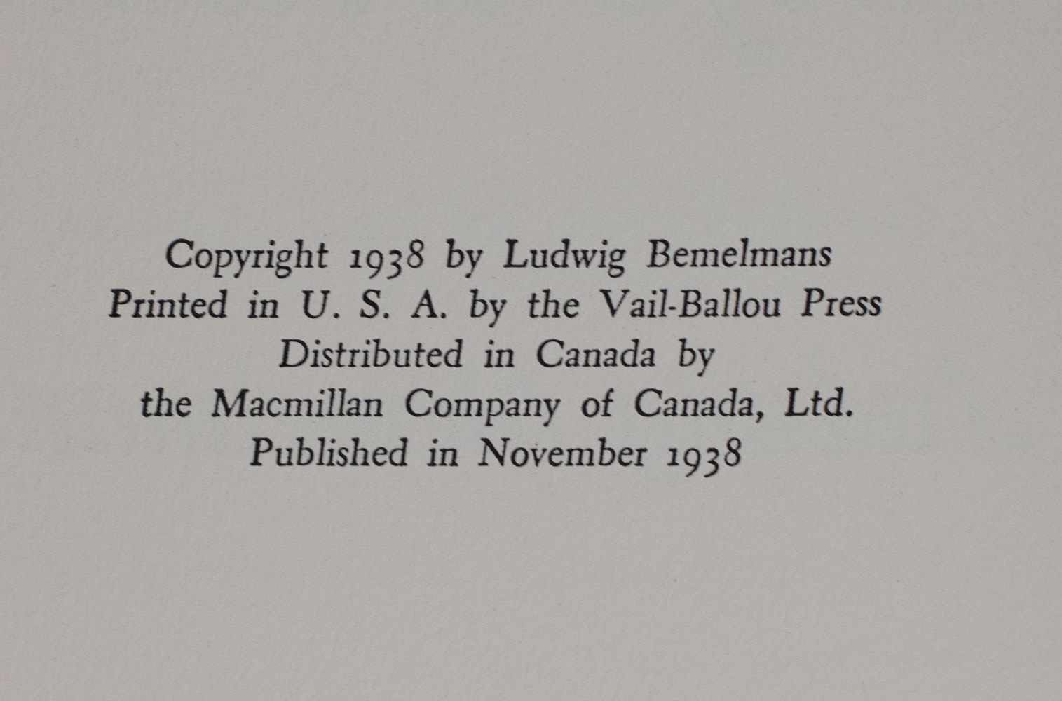 First edition of this wonderfully illustrated work by the author of the famed Madeline series. Octavo, original cloth, illustrated. In near fine condition.