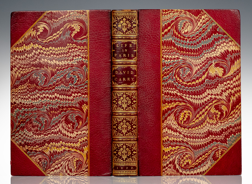 First edition of the author's account of an exciting experience in the French capital. Octavo, bound in three quarter morocco over marbled boards with gilt titles and elaborate tooling to the spine in six compartments within raised gilt bands, frontispiece, top edge gilt, marbled endpapers, original wrapper's bound in. Illustrated with twenty-one colored plates by George Cruikshank and twenty-two wooden engravings drawn by George Cruikshank and executed by Mr. White. In very good condition. Ownership plates of Dalmeny and Lucius Wilmerding to the front pastedown. Housed in a custom slipcase.