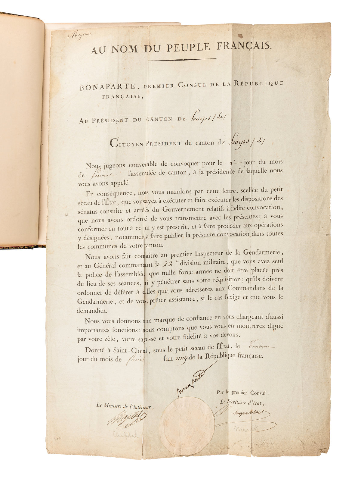 BONAPARTE, Napoleon; Bourrienne.