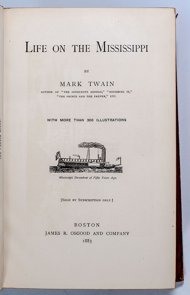 “You cannot surprise an individual more than twice with the same marvel": First Edition, first state of Mark Twains Life On The Mississippi in the publisher's original full sheep