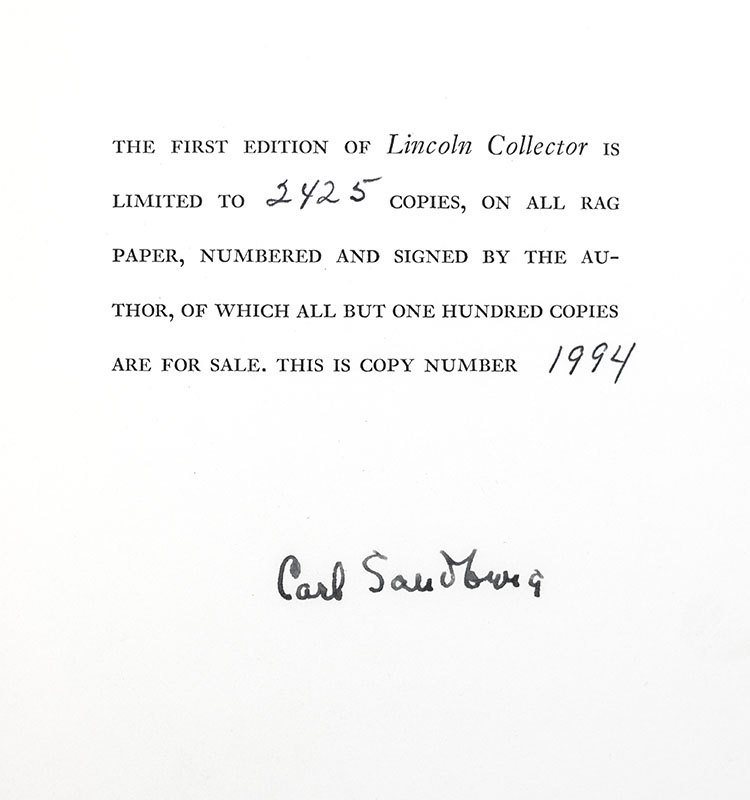 First edition and signed limited edition of Carl Sandburg's Lincoln Collector: The Story of Oliver R. Barrett's Great Private Collection