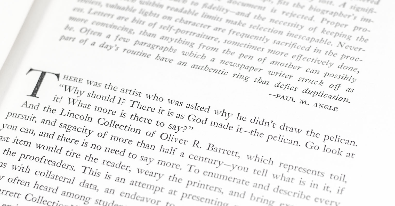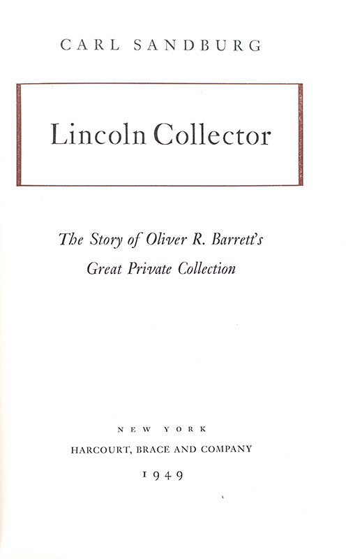 Chicago attorney Oliver Barrett began collecting Lincoln letters, documents, relics and related source materials as a child and, over the course of 50 years, amassed one of the most important Lincoln collections in his hometown of Pittsfield, Illinois. It was Barrett's collection that Sandburg used to author his Pulitzer Prize-winning biography of Lincoln.