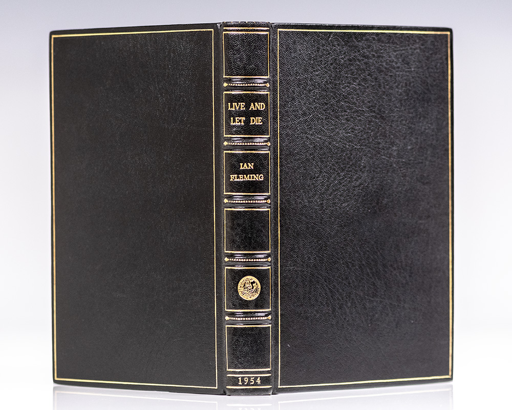 First edition of the second James Bond novel, Octavo, bound by in full morocco by Sangorski & Sutcliffe, gilt titles and tooling to the spine, raised bands, inner dentelles, marbled endpapers, all edges gilt, inscribed to two-time Oscar winner Leslie Bricusse by Roger Moore and the director, Guy Hamilton. Association copy, inscribed on the verso of the half-title "Happy memories. Guy Hamilton" and on the title page, "Dear Leslie - Happy Memories of my 1st! Roger Moore." Leslie Bricusse has neatly written in black ink and underlined in red ink "Guy Hamilton (Director)" and "Roger Moore 007." The 1973 film Live and Let Die is a spy thriller and the eighth film in the James Bond series produced by Eon Productions. It marked the debut of Roger Moore as the MI6 agent James Bond. Directed by Guy Hamilton and produced by Albert R. Broccoli and Harry Saltzman, the film's script was written by Tom Mankiewicz. Although the producers approached Sean Connery to return after Diamonds Are Forever, he declined, leading to a search for a new Bond lead, which resulted in Moore being cast. Sir Roger Moore was an English actor renowned for his role as the fictional secret agent James Bond. He was the third actor to portray Bond in the film series, starring in seven feature films from 1973 to 1985. Moore's portrayal of Bond in Live and Let Die to A View to a Kill is notable for being the most appearances of any actor in the Eon-produced entries of the series. The recipient, Leslie Bricusse OBE was a celebrated British composer, lyricist, and playwright known for his work on theatre musicals and film theme music. Some of his most notable contributions include writing the music and lyrics for films such as Doctor Dolittle, Goodbye, Mr. Chips, Scrooge, Willy Wonka & the Chocolate Factory, and Tom and Jerry: The Movie. He also co-wrote the iconic James Bond film songs Goldfinger and You Only Live Twice. Additionally, Bricusse co-wrote "Can You Read My Mind? (Love Theme from Superman)" with John Williams for Superman and "Le Jazz Hot!" with Henry Mancini for Victor/Victoria. Mervyn Ian Guy Hamilton was an English film director. He directed 22 films from the 1950s to the 1980s, including four James Bond films. Gibert A2a. In fine condition. An exceptional example, most rare and desirable signed and with noted provenance.