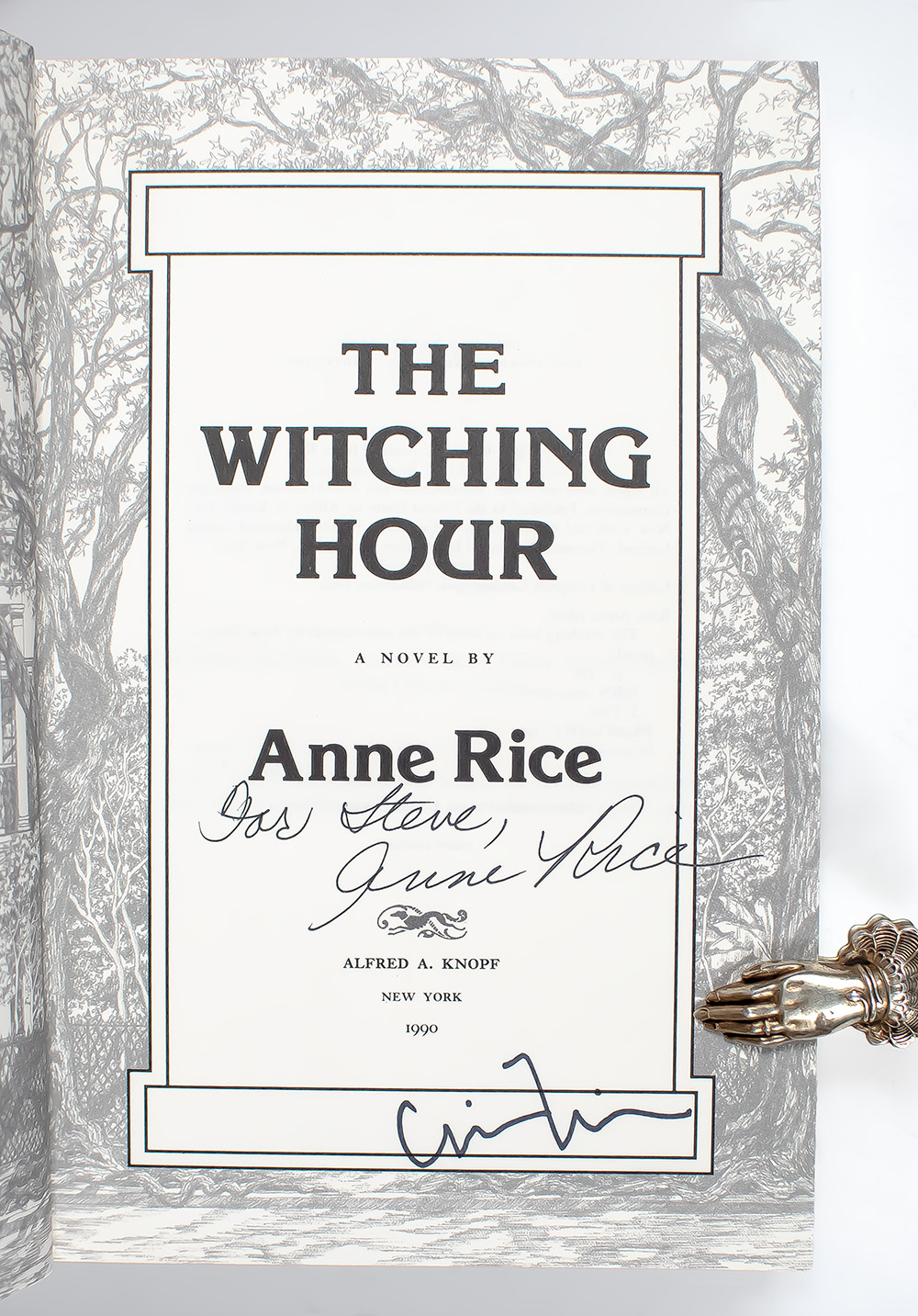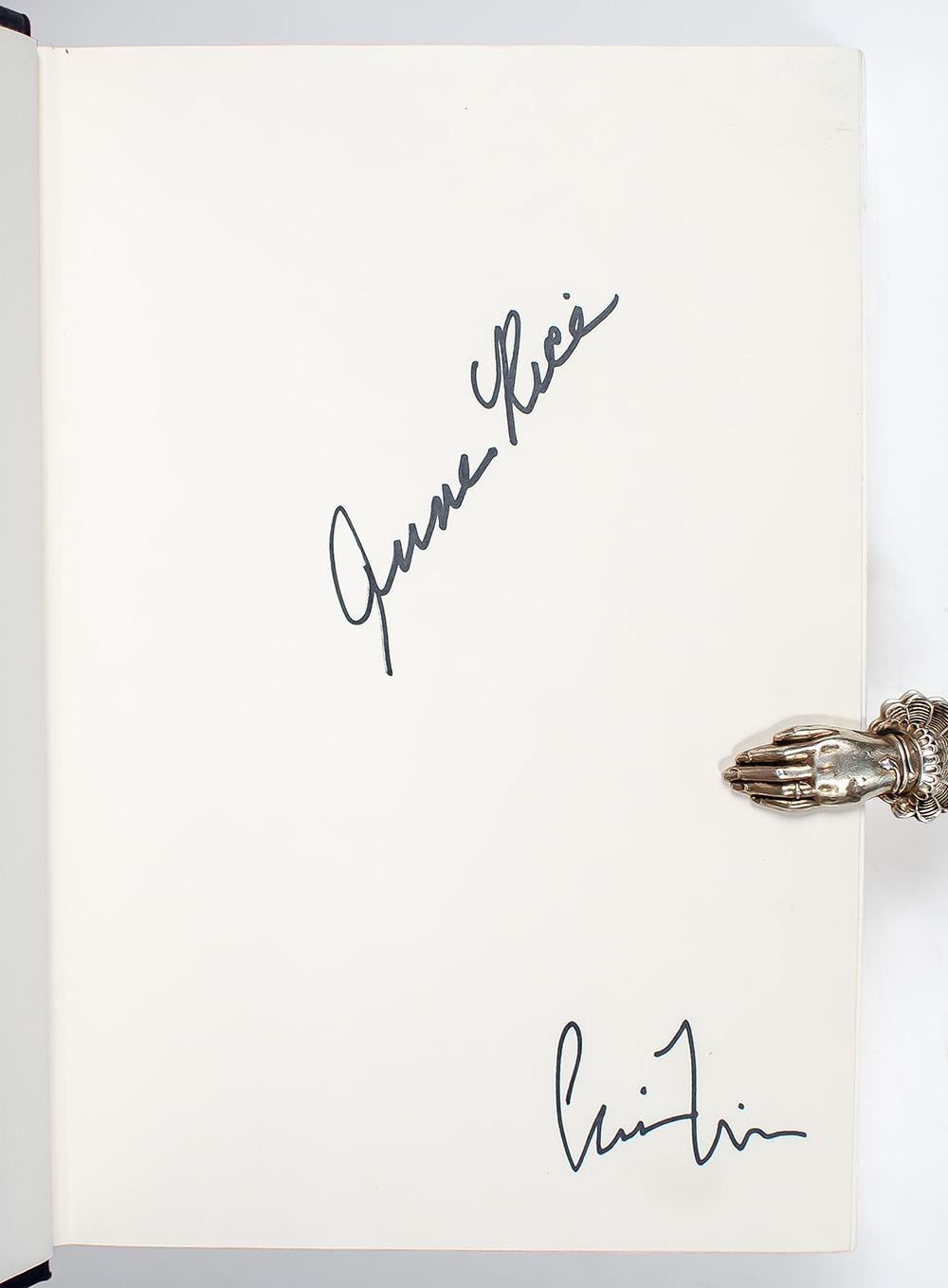 First editions of each volume in the author's classic Mayfair Witches Trilogy. Octavo, three volumes. Each volume is signed or inscribed by Anne Rice and The Witching Hour and Lasher signed three times each by Chip Kidd; on the front panel, below Rice's signature and on the rear jacket flap. Each are fine in fine dust jackets. Jacket design by Chip Kidd. Jacket design by Carol Devine Carson. A unique set.