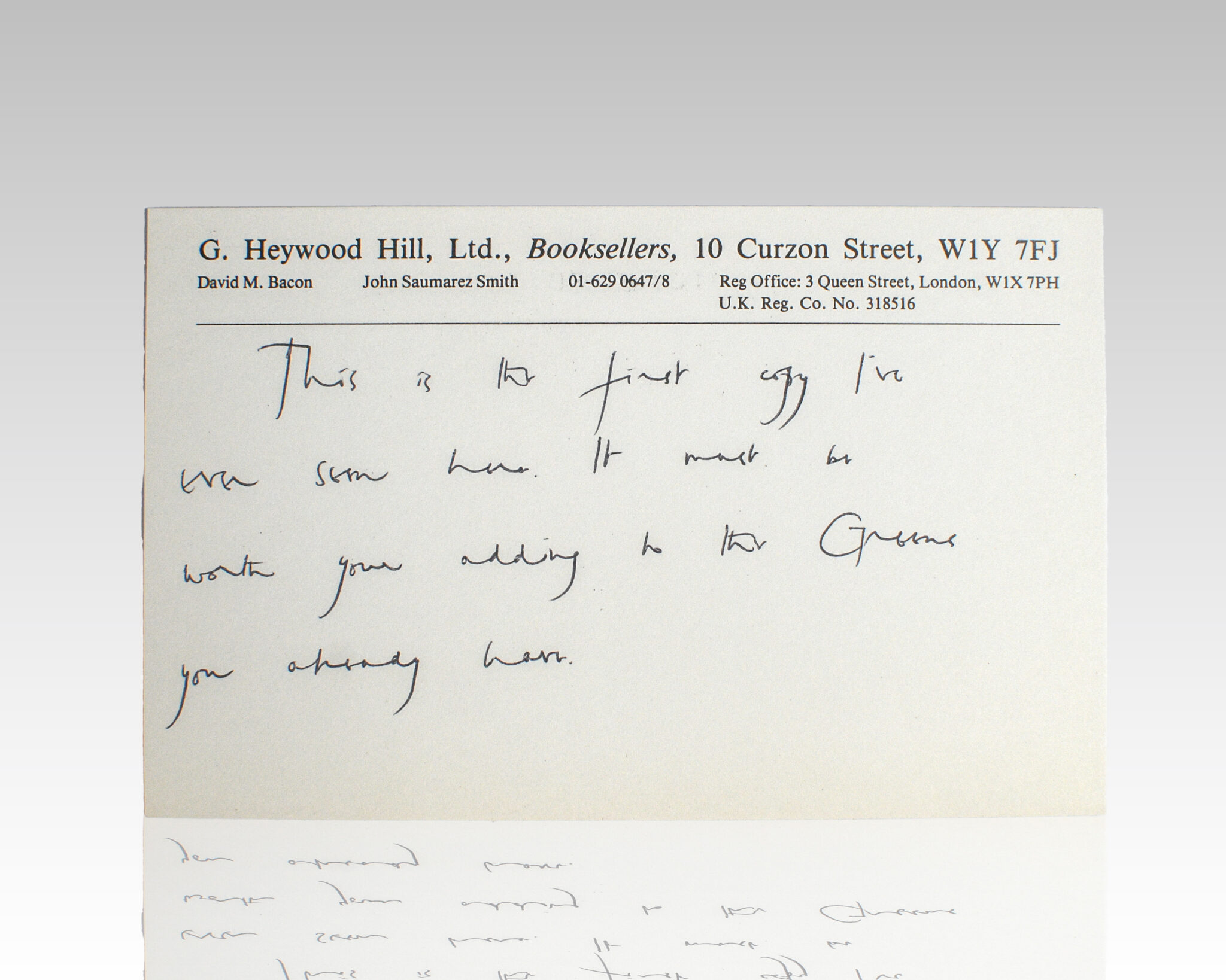 First edition of this classic novel. Octavo, original publisher's cloth. In very good condition. With a note laid in from Heywood Hill Booksellers saying this is the first first edition copy they have seen.