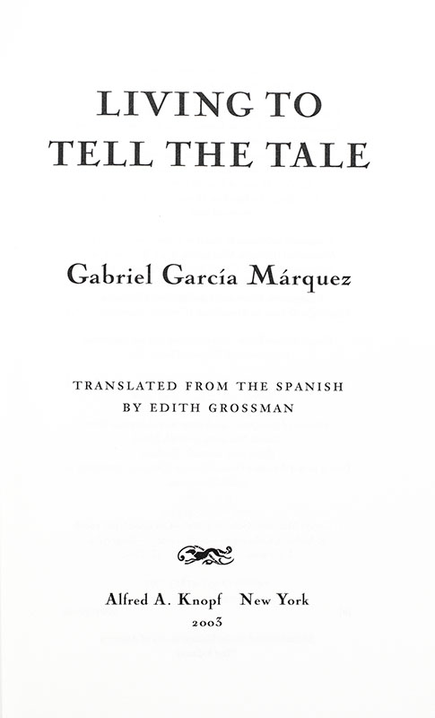 First Edition of the Nobel Prize-Winning Author’s Autobiography, Living to Tell the Tale; Signed by Gabriel Garcia Marquez