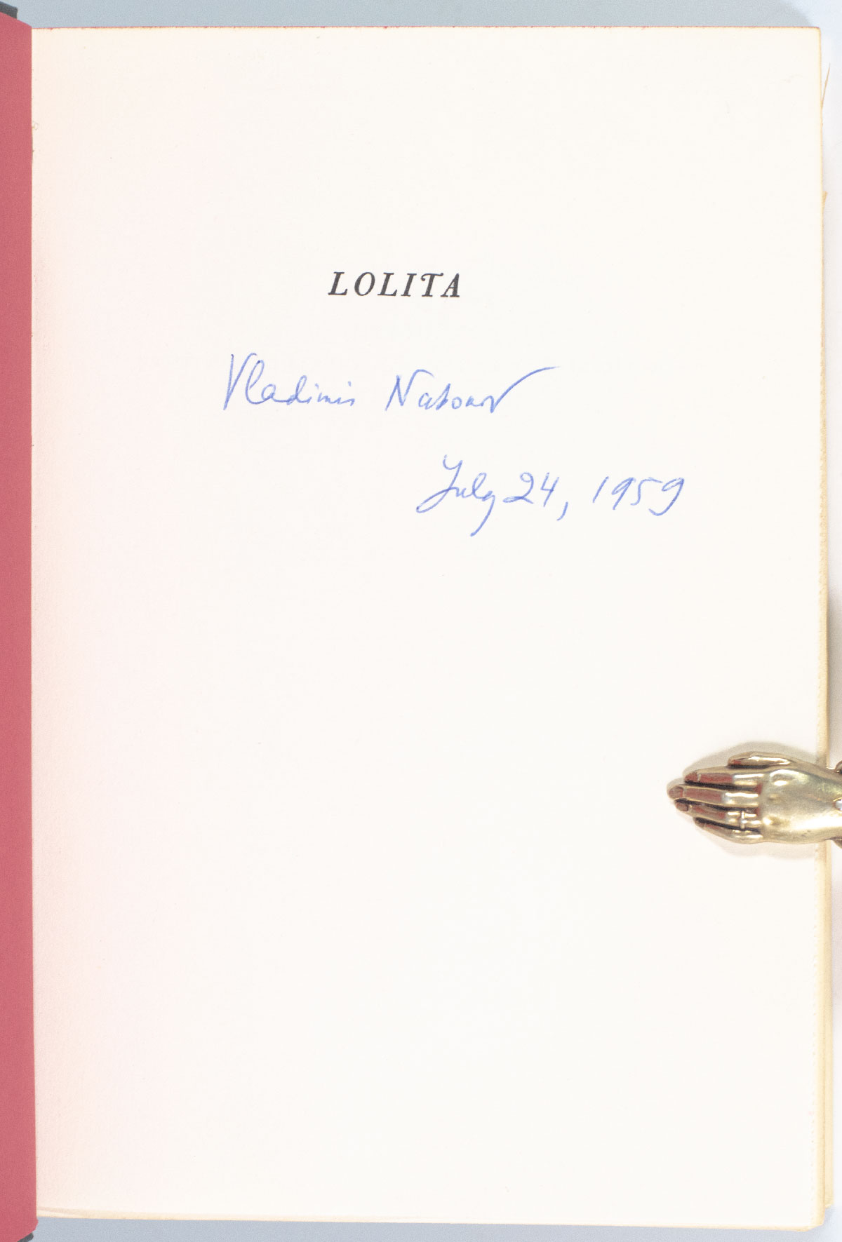 "Ladies and gentlemen of the jury, exhibit number one is what the seraphs, the misinformed, simple, noble-winged seraphs, envied. Look at this tangle of thorns": Vladimir Nabokov's masterpiece Lolita; signed by him with an original drawing of a butterfly