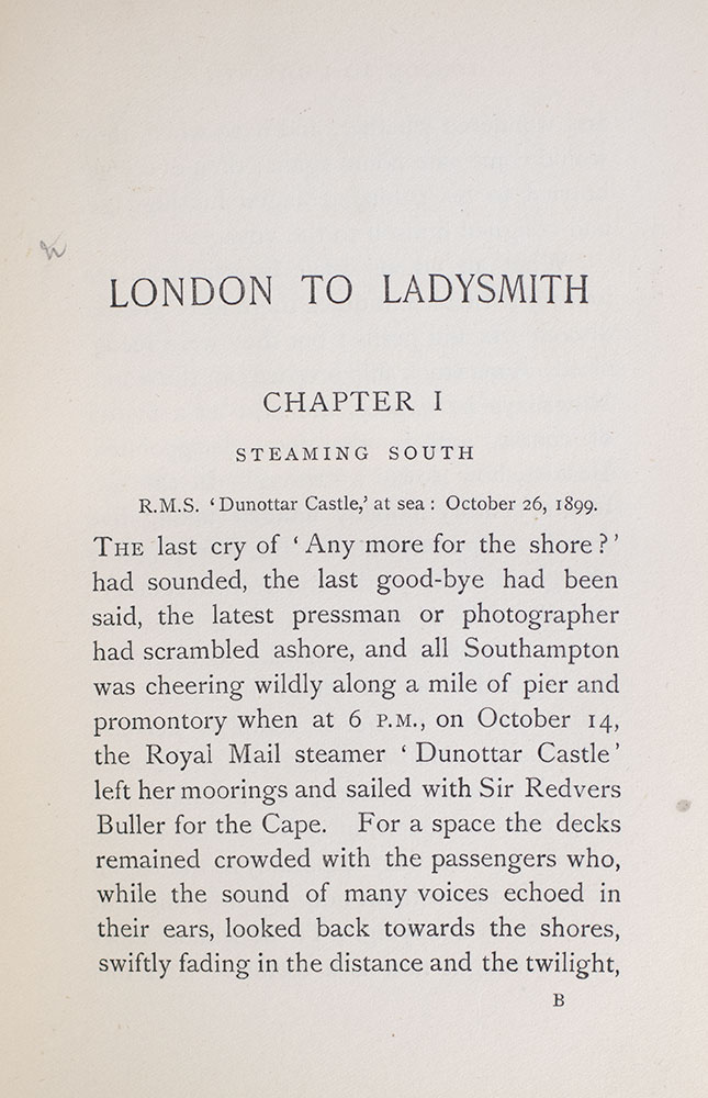 First edition of Churchill’s fourth book and personal record of his impressions during the first five months of the Second Boer War. Octavo, in original cloth, with three folding maps (one printed in color). In very good condition, owner's small name. A nice example.