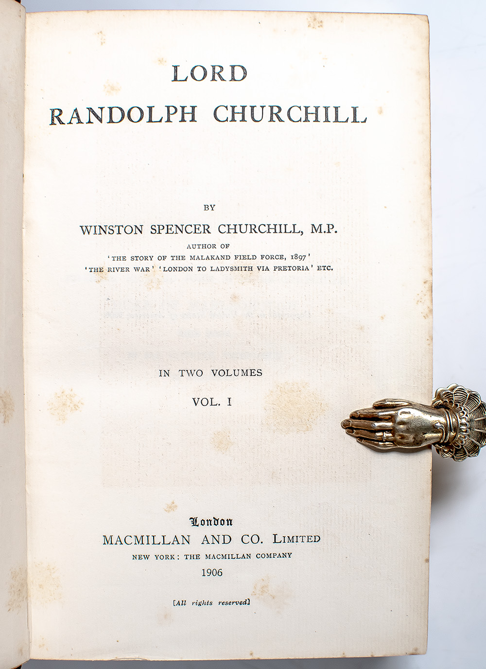 “ONE OF THE BEST POLITICAL BIOGRAPHIES IN ENGLISH:” FIRST EDITION OF WINSTON S. CHURCHILL'S LORD RANDOLPH CHURCHILL; Signed by winston s. churchill and finely bound by Sangorski & Sutcliffe