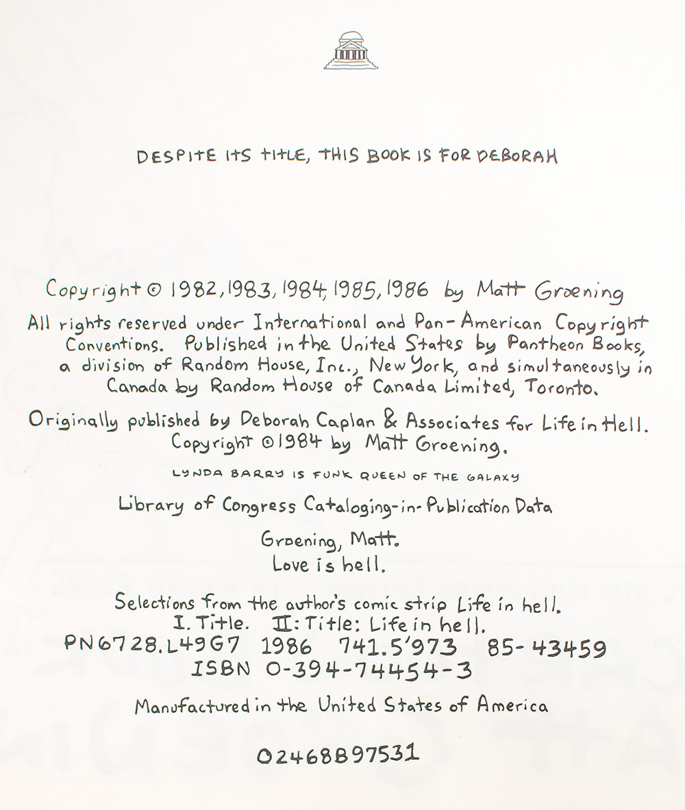 Matt Groening's Cartoon Book Love Is Hell; Inscribed by The Author with a Drawing of Binky