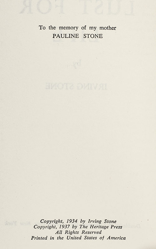 First Edition of Irving Stone's Lust For Life; Signed by Him and Legendary Actor Kirk Douglas