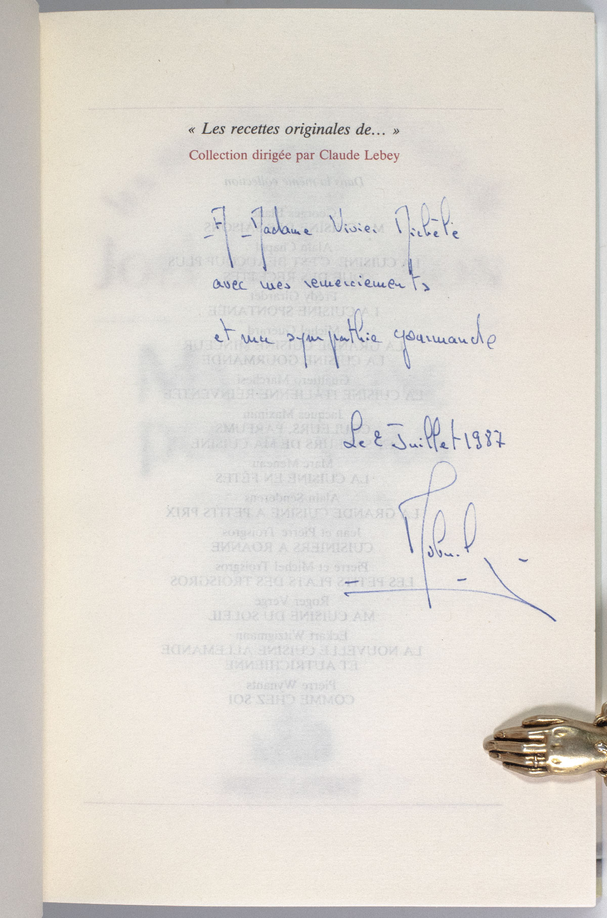 "Cooking is Chemistry, really": First Edition of Joel Robuchon's Ma Cuisine Pour Vous: Les Recettes Originales de Joel Robuchon; inscribed by him