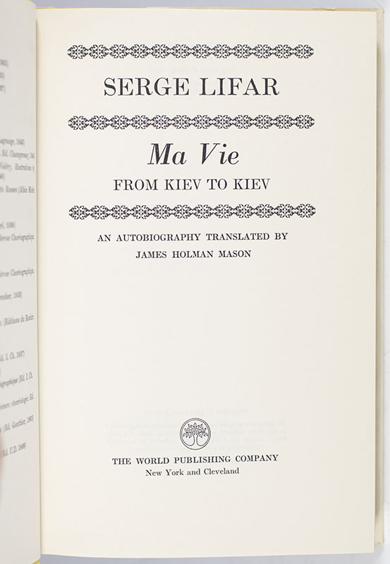 First edition of Ma Vie From Kiev to Kiev; Lengthily inscribed by Serge Lifar