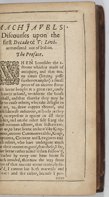 Rare first edition in English of Machiavelli's fundamental Discourses
