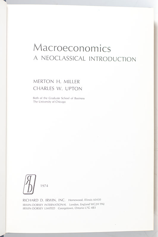 "Miller and Upton is by far the most cited macroeconomics text in front line academic research journals over the last ten years. It has become a contemporary classic" (Roger C. Kormendi, University of Michigan).