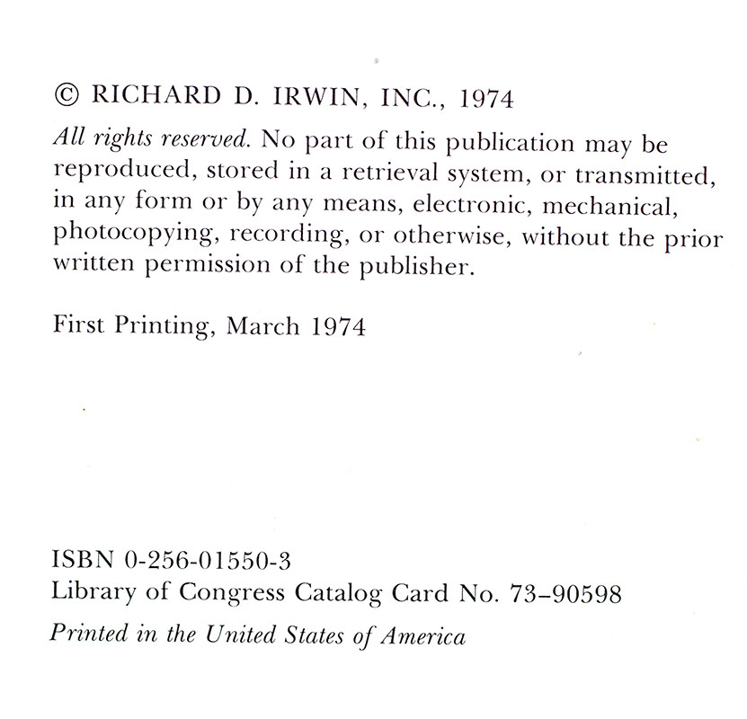 Homewood, Il: Richard D. Irwin, Inc, 1974.