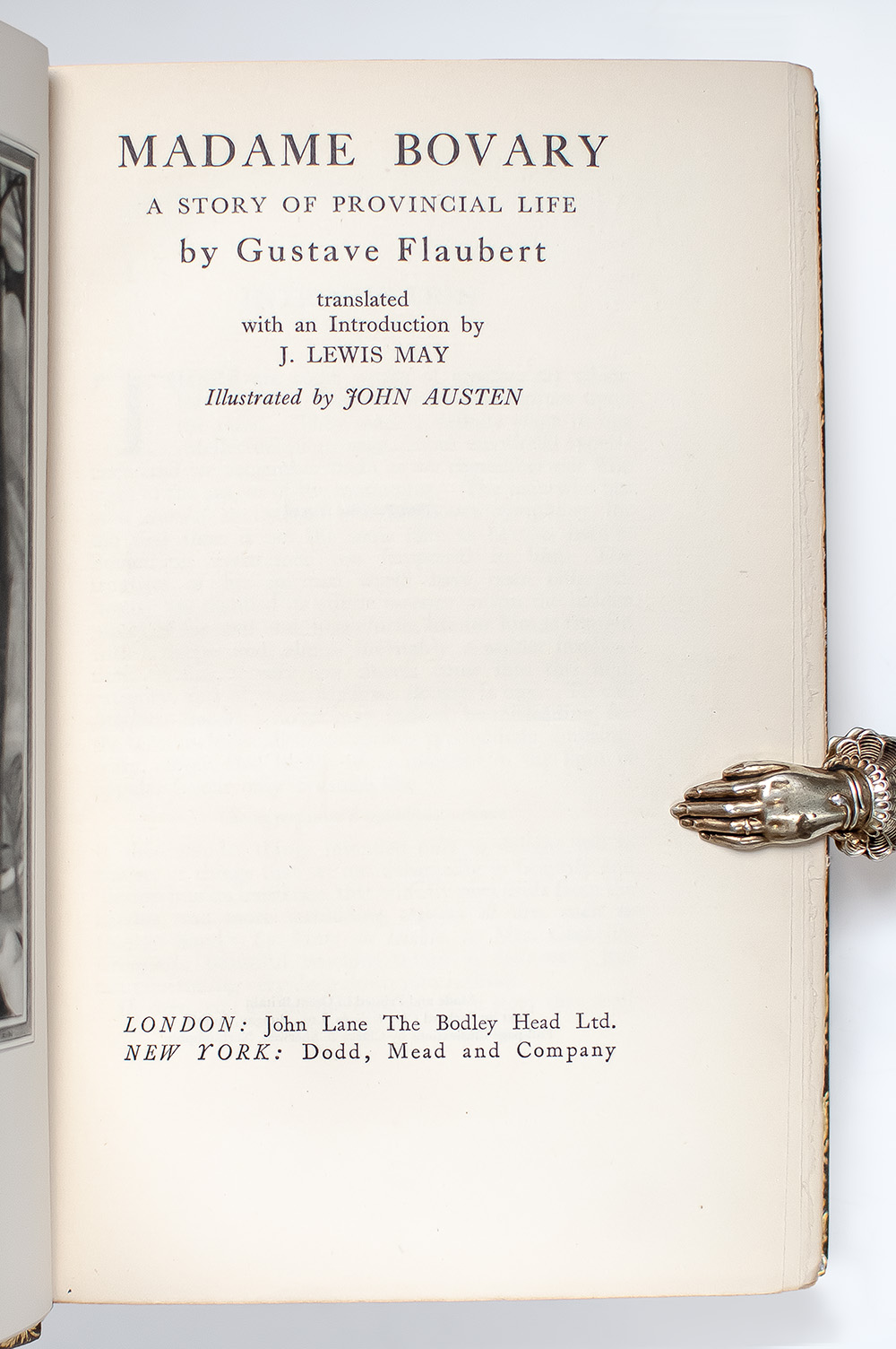 The Bodley Head edition of a seminal novel in literary realism, renowned for its psychological depth and critique of bourgeois society. Octavo, bound in full pictorial morocco by Sangorski & Sutcliffe/Zaehnsdorf with gilt titles to the spine in six compartments within raised gilt bands, top edges gilt, gilt turn-ins and inner dentelles, marbled endpapers, with black and white illustrations by John Austen. In fine condition with several pages uncut. Translated and with an introduction by J. Lewis May. A beautiful example.